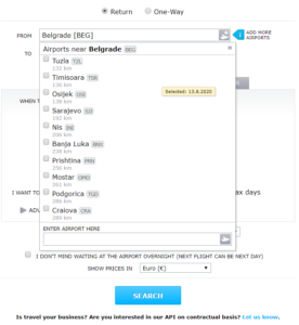- Samo sa izabranog aerodroma ili i sa okolnih aerodroma